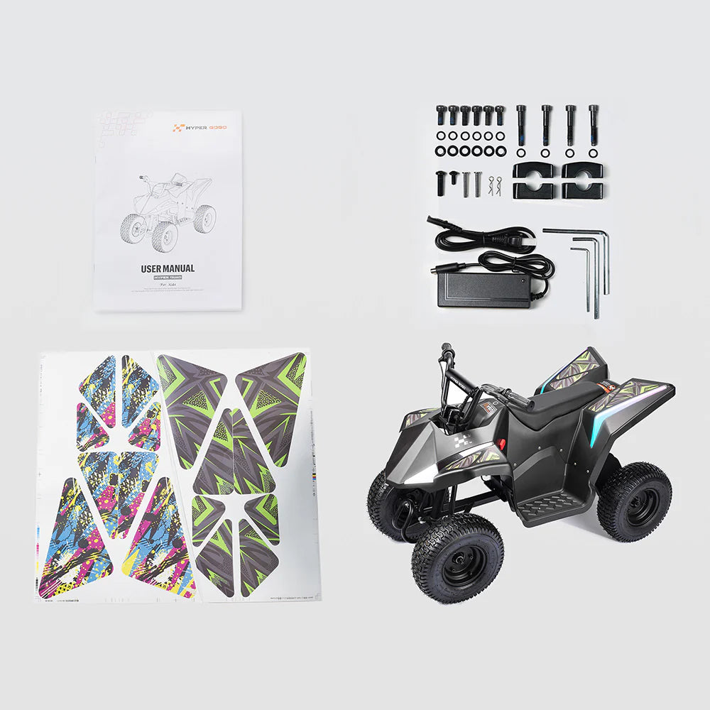Give your child the thrill of adventure with the Hyper Quad 36V Electric 4-Wheeler ATV, a bold and exciting ride-on designed for kids and teens ready for real off-road fun. Built for young adventurers (recommended age 12+), this premium ATV delivers powerful performance, rugged durability, and stylish features. Ideal for dirt paths, grassy fields, or backyard exploration.